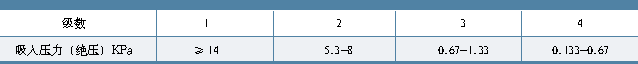 蒸汽喷射真空泵是一种用水蒸汽作为抽气介质来获得真空的装置。一定压力的蒸汽通过拉伐尔喷嘴以超音速射出。由压力能转化为速度能。在喷嘴出口处由于高速汽流的引射作用形成低压,工作蒸汽与被抽气流在混合室进行混合,并进行能量交换,混合气流在扩压管内得到减速增压。由于用户对真空度要求不同。每台蒸汽喷射真空泵可由单级或数级串接。级数越多,真空度越高(残压越低)。一般吸入压力与级数的关系如下: